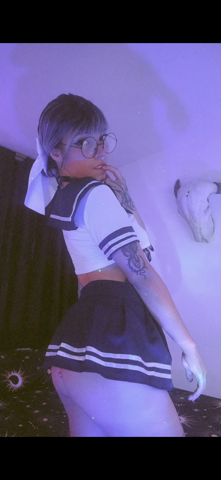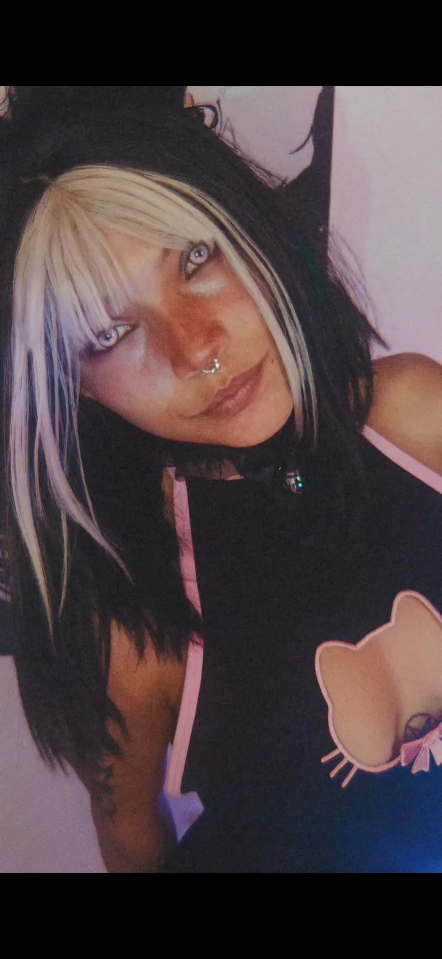 “A calm gaze, a choker with a bell, and that feline detail that says it all. A touch of ink, a hint of blush, and the composure of someone who knows what they want. ✨🖤”
